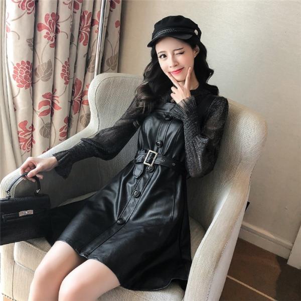 フェイクレザー ワンピース スカート オールインワン ミニ丈 タイトワンピース スリム レザー風 小さめ 無地 秋 冬 64 Happinessshop ハピネスショップ レディース ファッション アイテム トレンド